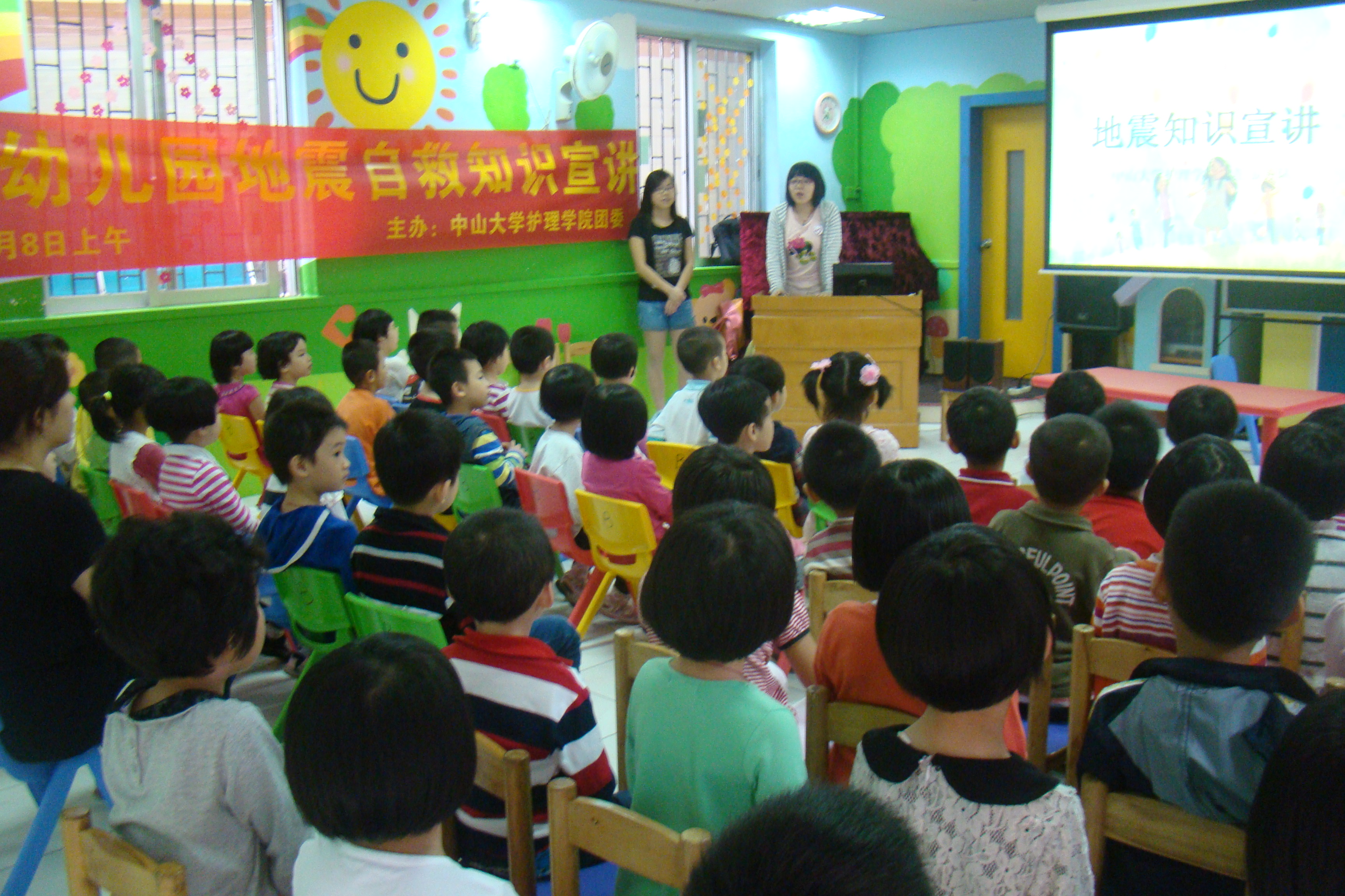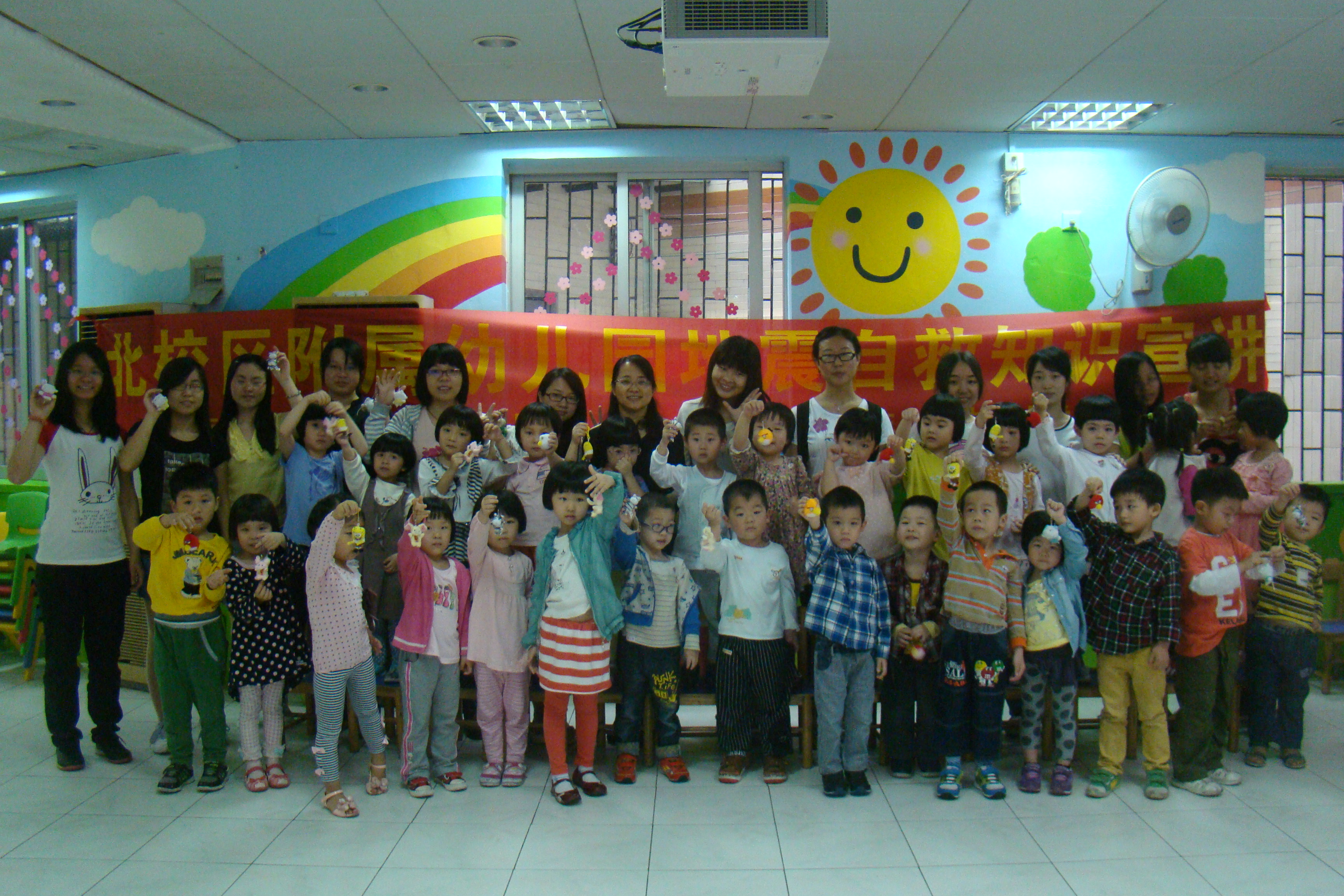 5月8日上午8:30,我们的志愿者们来到了幼儿园,对396名各班小朋友进行了地震知识宣讲。首先,志愿者播放了有关地震的动画视频,生动地展现了地震来临时的应对办法。随后,在小班的小朋友当中,我们详细介绍了在家和学校遇到地震时的躲避姿势和方法;在中班的小朋友当中,志愿者主要讲解了如何寻找相对安全的“生命三角区”,“卧倒掩护”的应用,以及在商场、野外等地方遇到地震时要如何应对;在大班的小朋友当中,志愿者还额外宣传了震后自救的方法等。志愿者们宣讲与现场示范相结合的方法,小朋友们好奇的提问和各种充满童真的回答,让教室里充满着欢乐的气氛。在活动的最后,我们的志愿者给小朋友们送上了精心准备的小礼物,在小朋友们甜甜的告别声中,志愿者返回了学校。