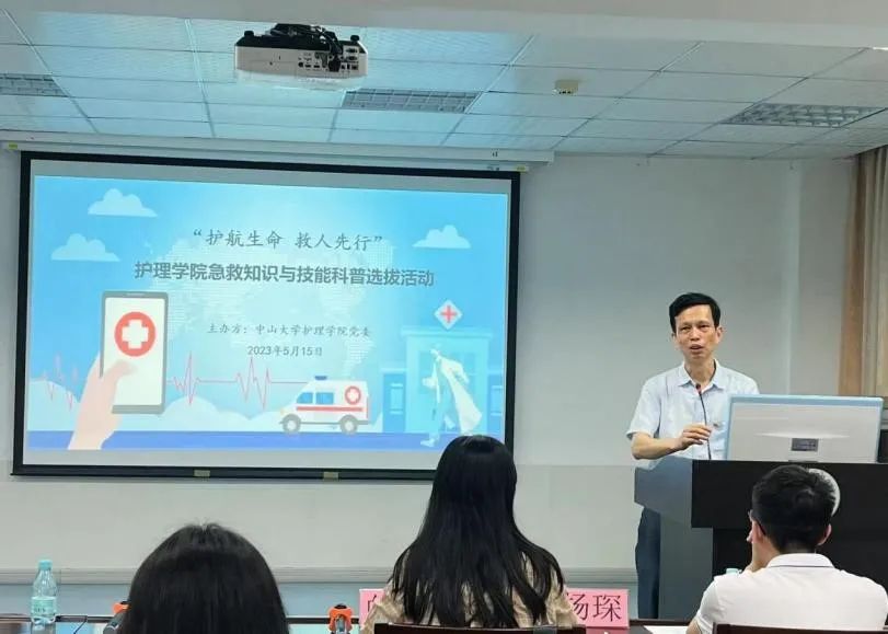 为推动学习贯彻习近平新时代中国特色社会主义思想主题教育走深走实,增强学生党员急救实践本领和能力,选拔优秀人才为我院党委“急救知识进校园、进社区、进企业”的“三进”品牌活动储备师资力量,5月15日晚上,由h漫画 党委主办、学院团委与博士生党支部联合承办的“护航生命 救人先行”急救知识与技能选拔活动在学院二楼东讲学厅举行。h漫画 党委书记陈昌龄,学院原党委副书记、中山六院现任党委副书记、纪委书记李文敏,学院团委书记何笑霞出席了活动,赵娟娟副教授、曹希副教授、杨琛副教授、白杨助理教授出席并担任评委。