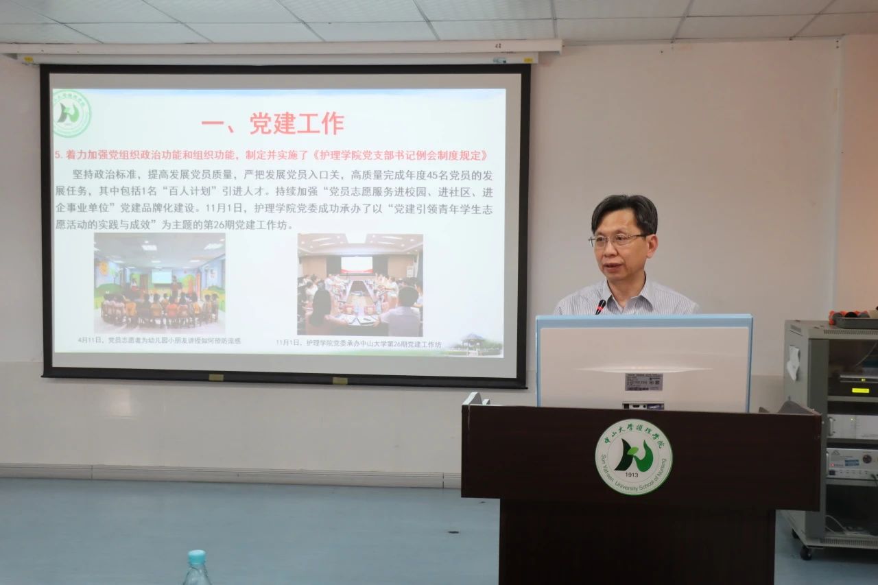 陈昌龄书记在总结发言中强调,刚刚过去的2023年,是党和国家锐意进取、砥砺前行的一年,也是h漫画 发展浓墨重彩的一年,是h漫画 护理教育创办110周年。在学校党委的领导下,h漫画 党政领导班子坚持以习近平新时代中国特色社会主义思想为指导,不断增强“四个意识”、坚定“四个自信”、做到“两个维护”,深入学习贯彻党的二十大精神,落实学校第十四次党代会精神和春秋季工作会议精神,高质量发展扎实推进,各项事业持续向好。2024年是新中国成立75周年、“十四五”时期的关键之年,学院党政领导班子将继续团结和带领广大教职工凝心聚力,落实立德树人根本任务,立足学科优势与区位优势,提高人才队伍质量,促进学科交叉融合,服务国家战略与粤港澳大湾区发展,助推学校高质量内涵式发展和高水平科技自立自强取得新成效,以更加优异的成绩迎接学校百年华诞!